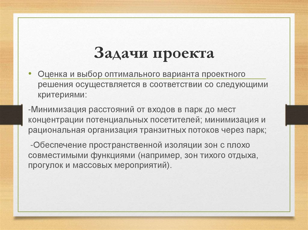 Задачи проекта• Оценка и выбор оптимального варианта проектного
