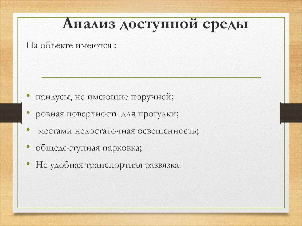 Анализ доступной средыНа объекте имеются :
