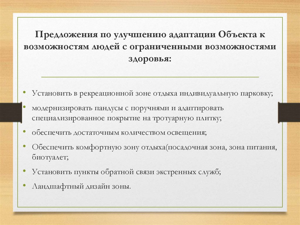 Предложения по улучшению адаптации Объекта квозможностям людей с ограниченными возможностями