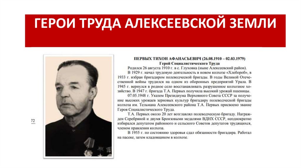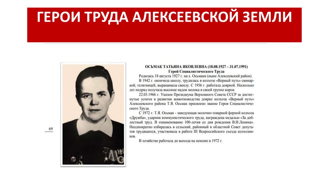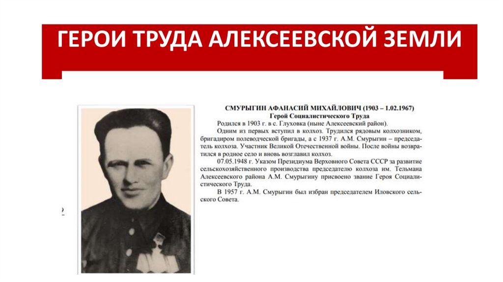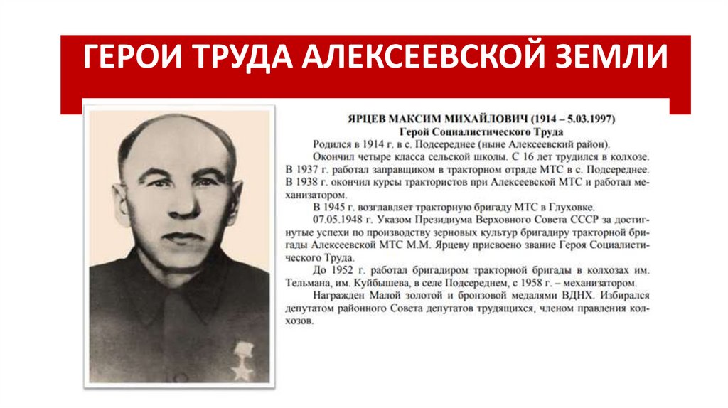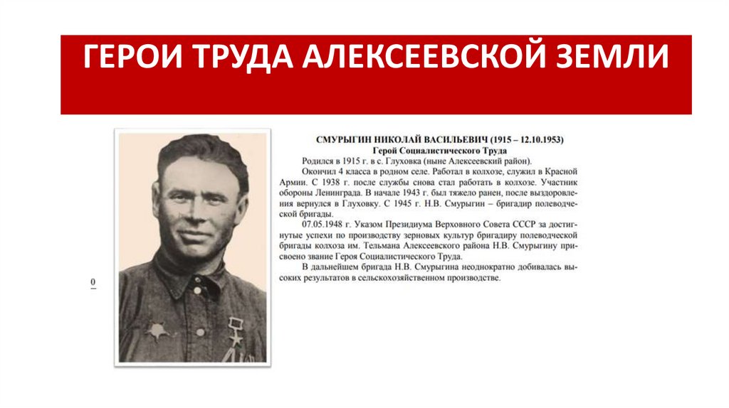 ГЕРОИ ТРУДА АЛЕКСЕЕВСКОЙ ЗЕМЛИ