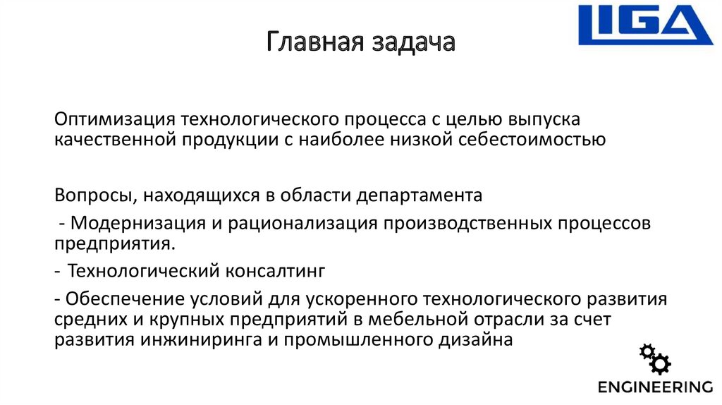 Главная задачаОптимизация технологического процесса с целью выпуска