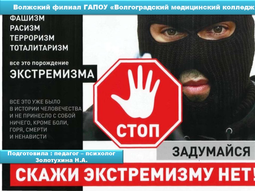 Волжский филиал ГАПОУ «Волгоградский медицинский колледж»Подготовила : педагог – психолог