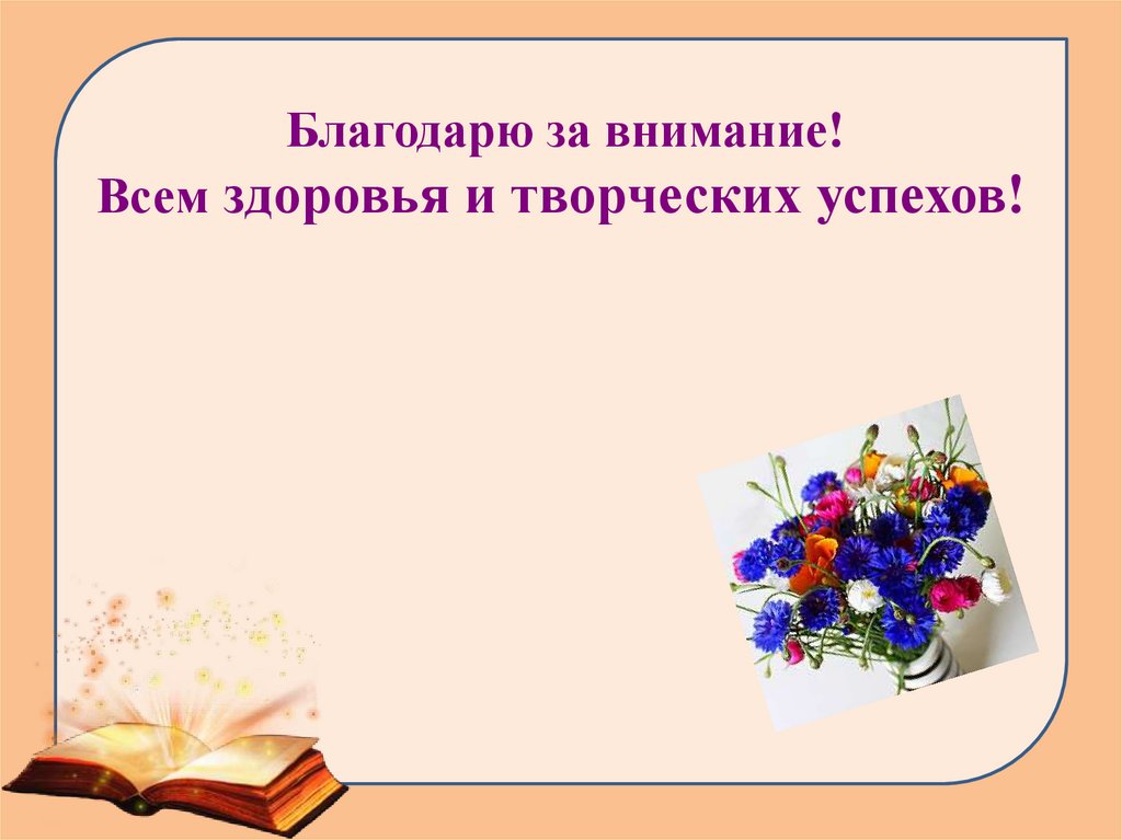 Благодарю за внимание!Всем здоровья и творческих успехов!
