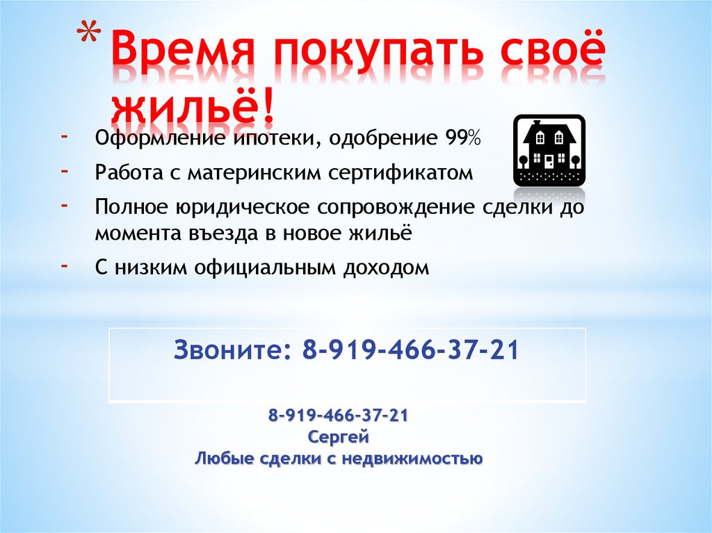 Оформление ипотеки, одобрение 99%