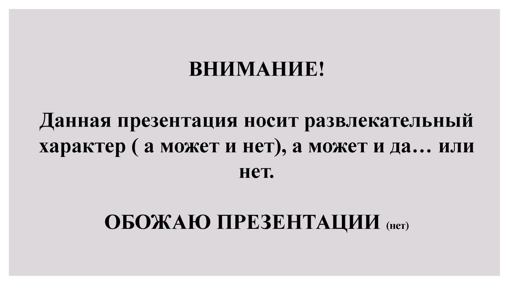 ВНИМАНИЕ!Данная презентация носит развлекательный