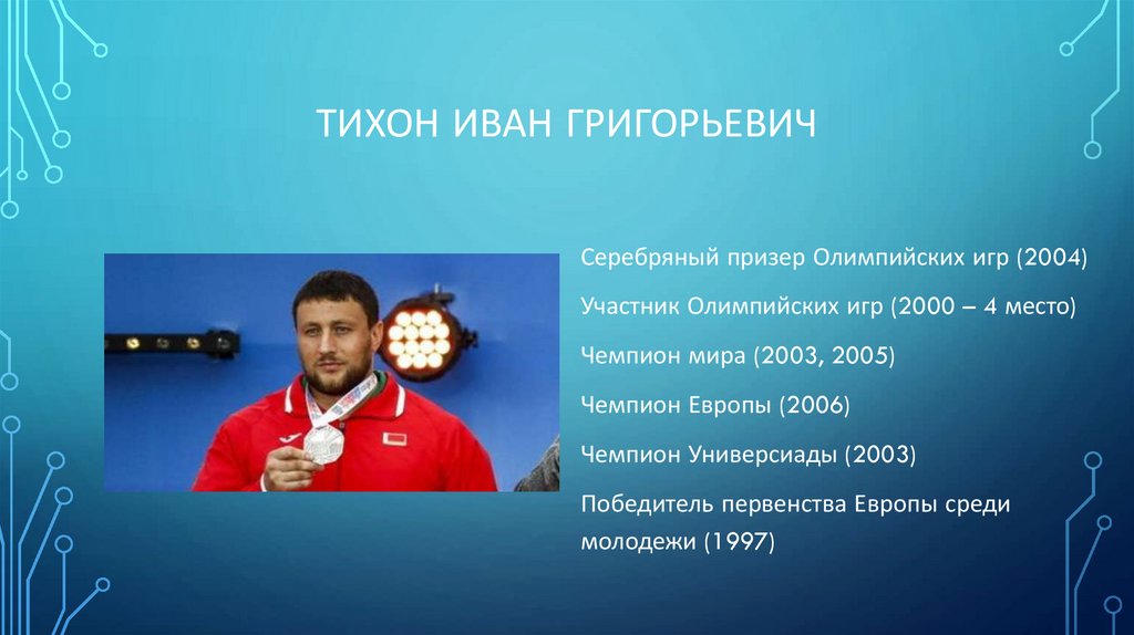 ТИХОН ИВАН ГРИГОРЬЕВИЧСеребряный призер Олимпийских игр (2004)