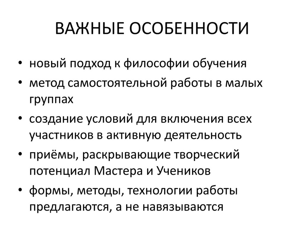 ВАЖНЫЕ ОСОБЕННОСТИ• новый подход к философии обучения