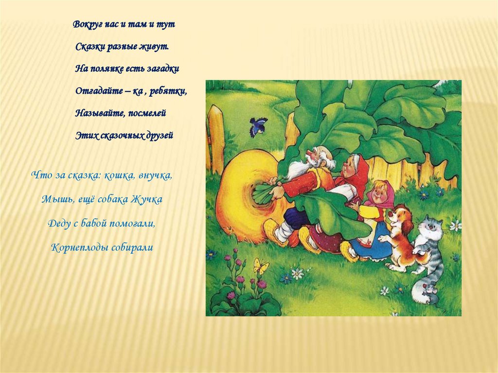 Цель:Обучение детей угадыванию любимых сказок