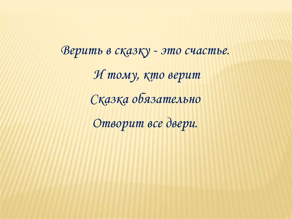 Верить в сказку - это счастье.И тому, кто верит