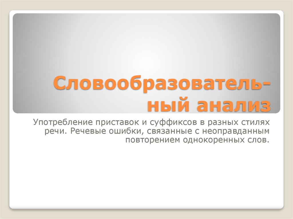 Словообразовательный анализУпотребление приставок и суффиксов в разных стилях