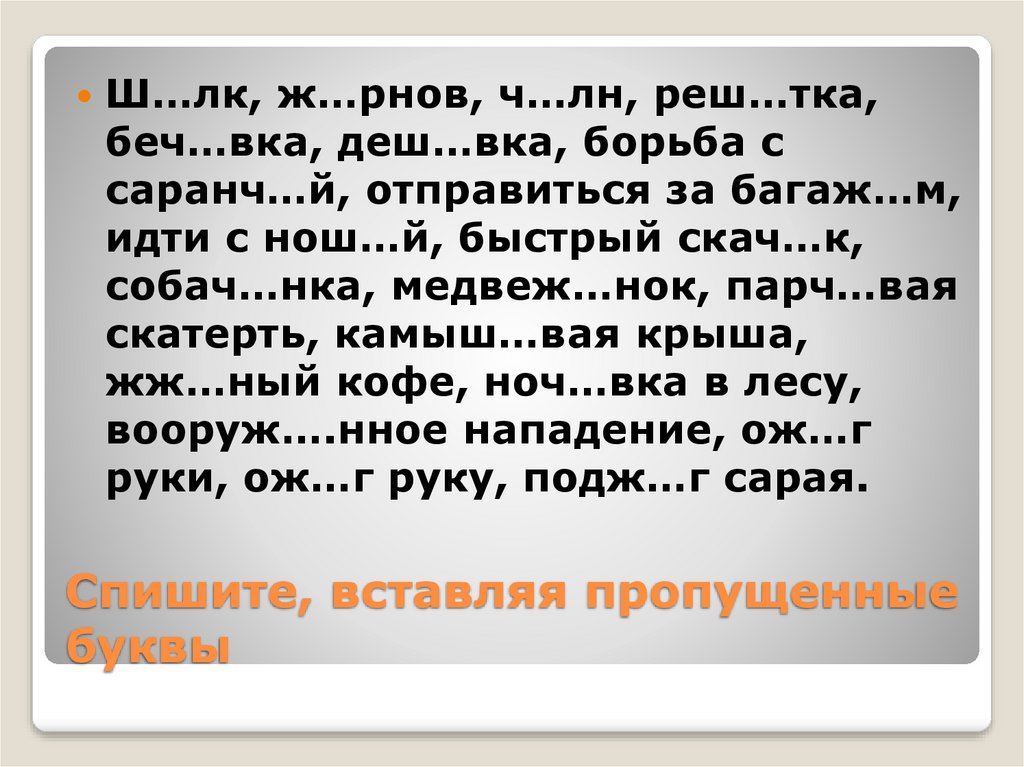 Ш…лк, ж…рнов, ч…лн, реш…тка,беч…вка, деш…вка, борьба с