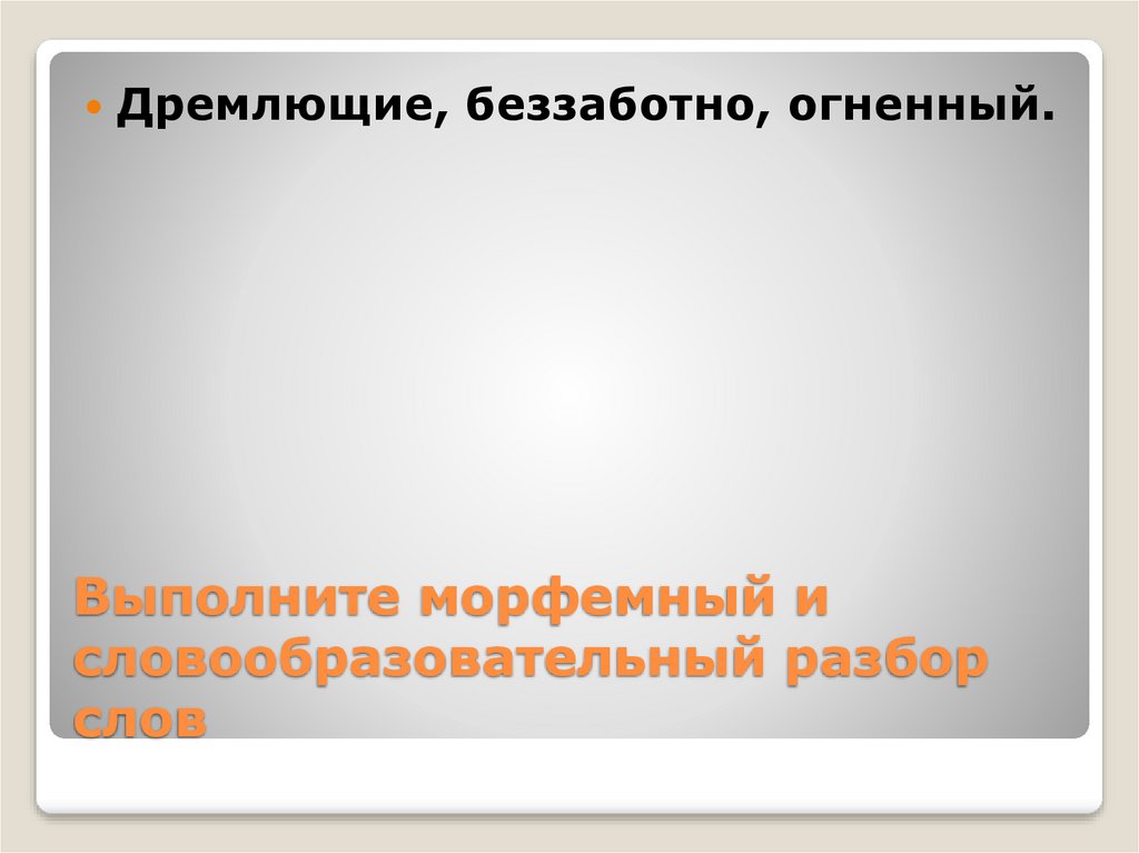 Дремлющие, беззаботно, огненный.Выполните морфемный и