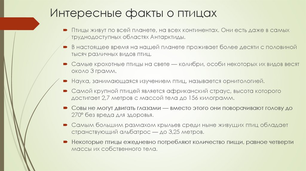 Интересные факты о птицахПтицы живут по всей планете, на всех континентах. Они есть даже в самых