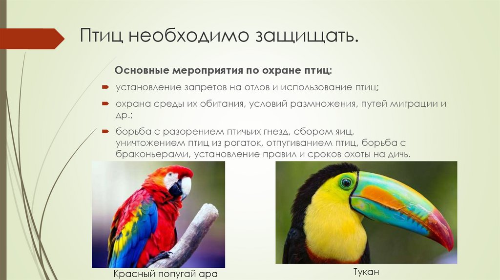 Птиц необходимо защищать.Основные мероприятия по охране птиц: