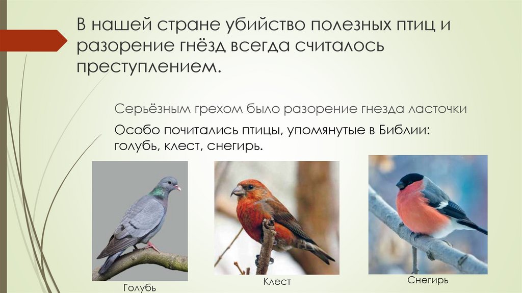 В нашей стране убийство полезных птиц иразорение гнёзд всегда считалось