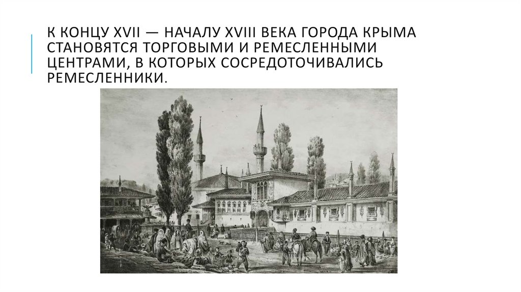К КОНЦУ XVII — НАЧАЛУ XVIII ВЕКА ГОРОДА КРЫМАСТАНОВЯТСЯ ТОРГОВЫМИ И РЕМЕСЛЕННЫМИ