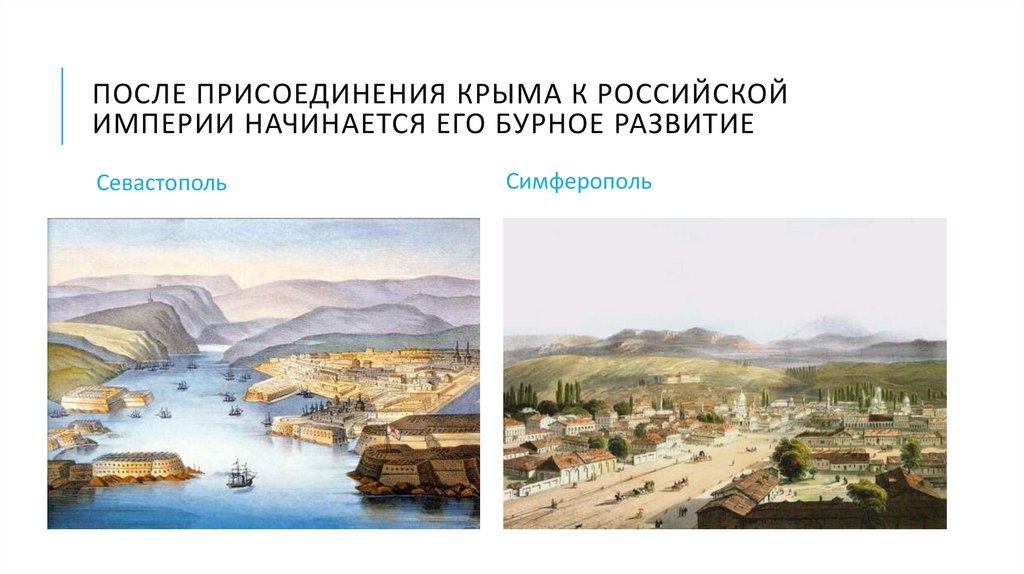ПОСЛЕ ПРИСОЕДИНЕНИЯ КРЫМА К РОССИЙСКОЙИМПЕРИИ НАЧИНАЕТСЯ ЕГО БУРНОЕ РАЗВИТИЕ