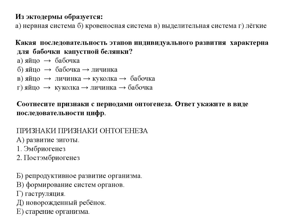 Соотнесите признаки с периодами онтогенеза. Ответ укажите в виде