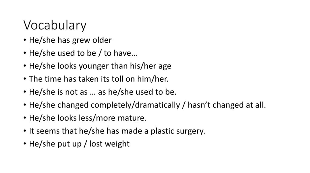 Vocabulary• He/she has grew older
