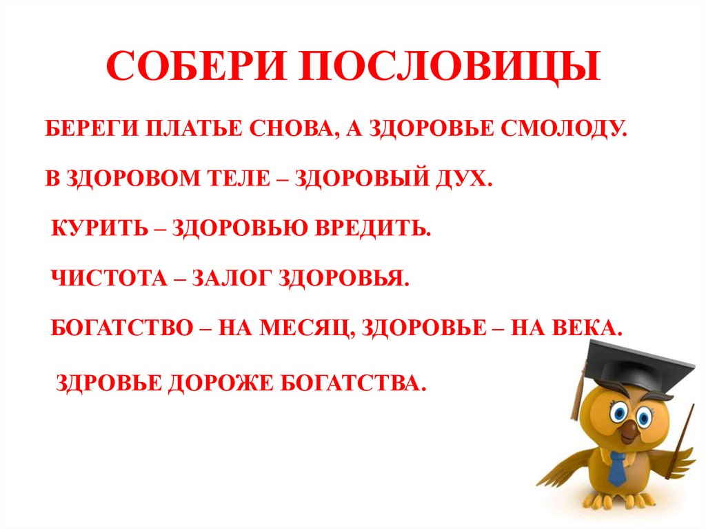 СОБЕРИ ПОСЛОВИЦЫБЕРЕГИ ПЛАТЬЕ СНОВА, А ЗДОРОВЬЕ СМОЛОДУ.