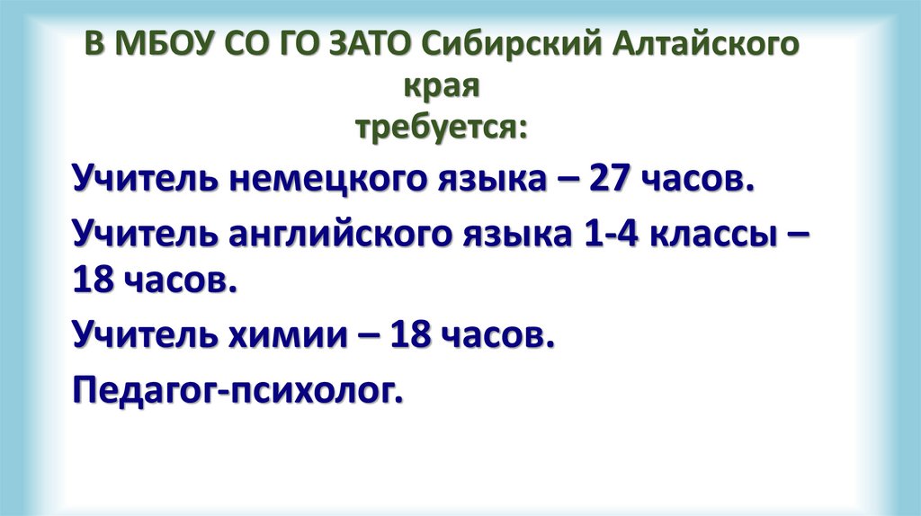 В МБОУ СО ГО ЗАТО Сибирский Алтайскогокрая