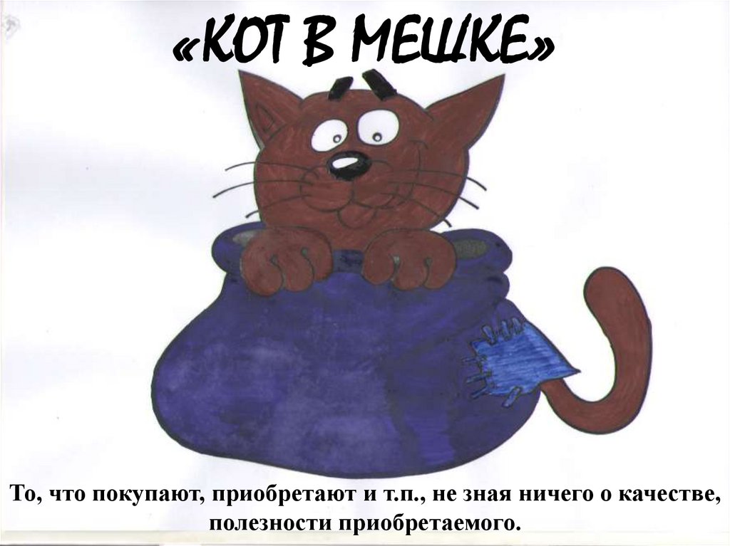 «КОТ В МЕШКЕ»То, что покупают, приобретают и т.п., не зная ничего о качестве,