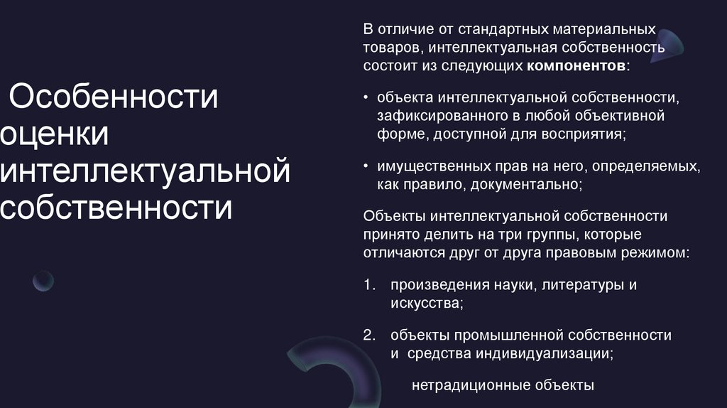 В отличие от стандартных материальныхтоваров, интеллектуальная собственность