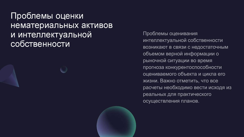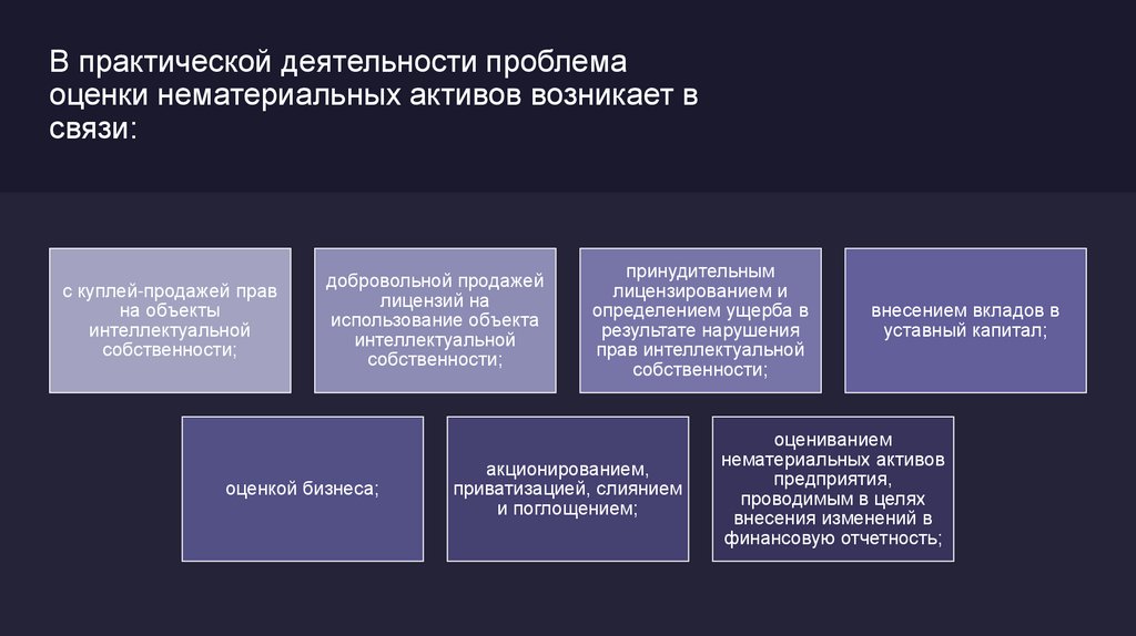 В практической деятельности проблемаоценки нематериальных активов возникает в