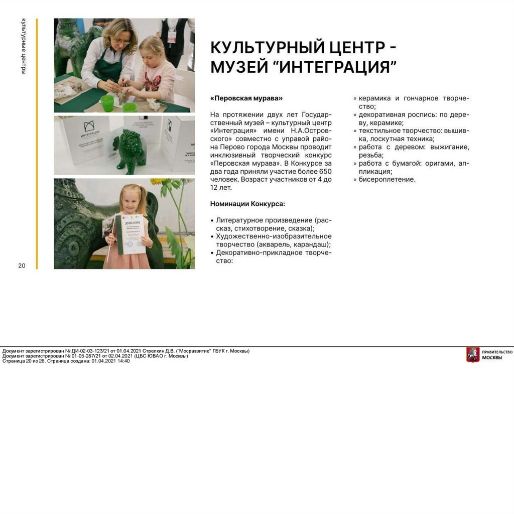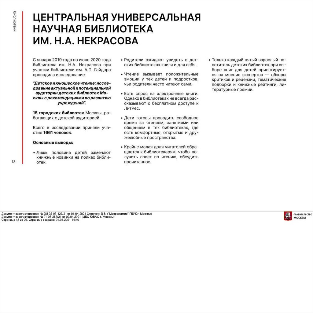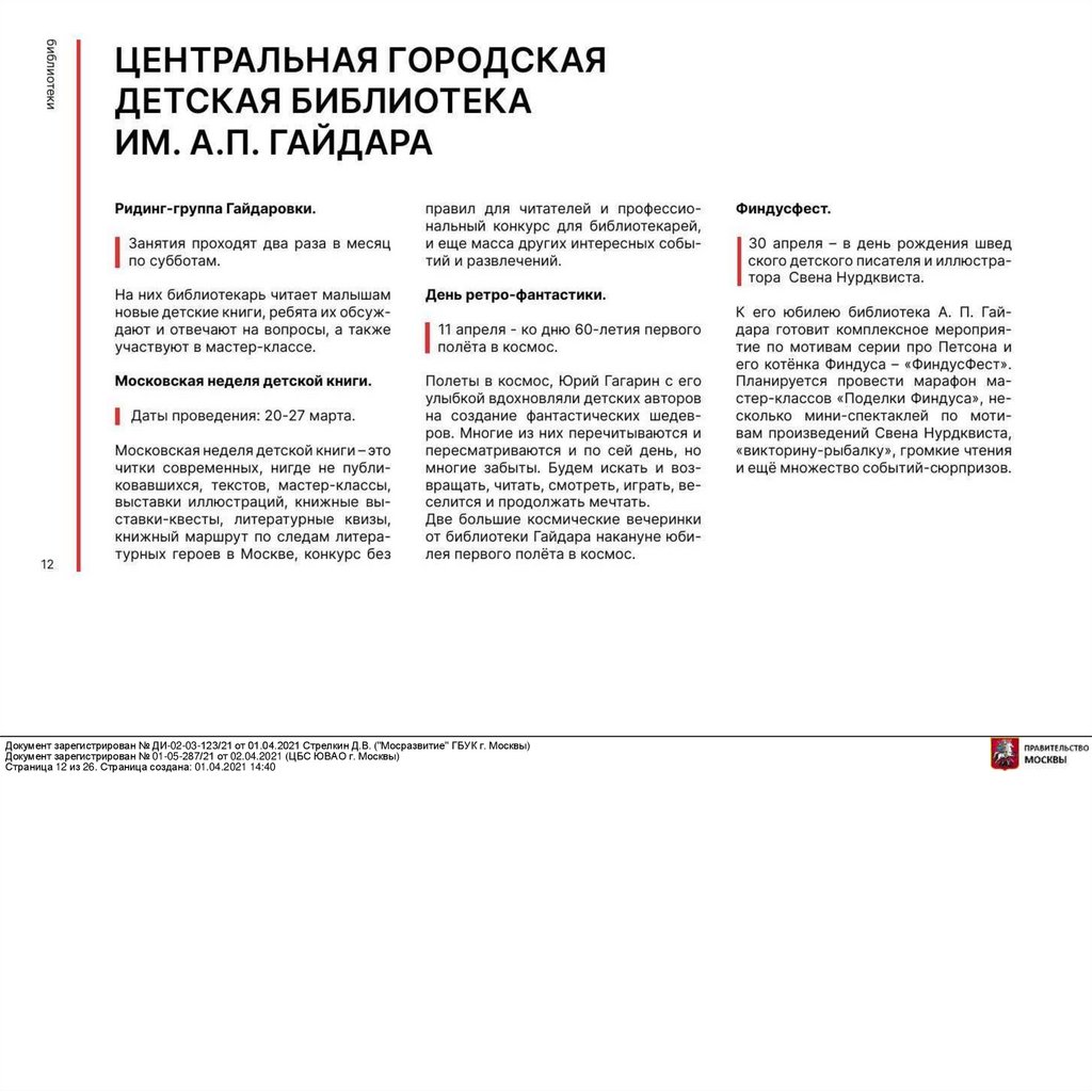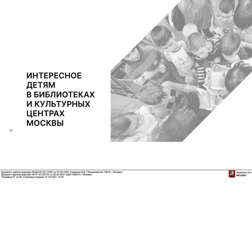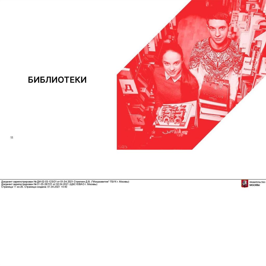 Документ зарегистрирован № ДИ-02-03-123/21 от 01.04.2021 Стрелкин Д.В. ("Мосразвитие" ГБУК г. Москвы)Документ зарегистрирован № 01-05-287/21 от 02.04.2021 (ЦБС ЮВАО г. Москвы)