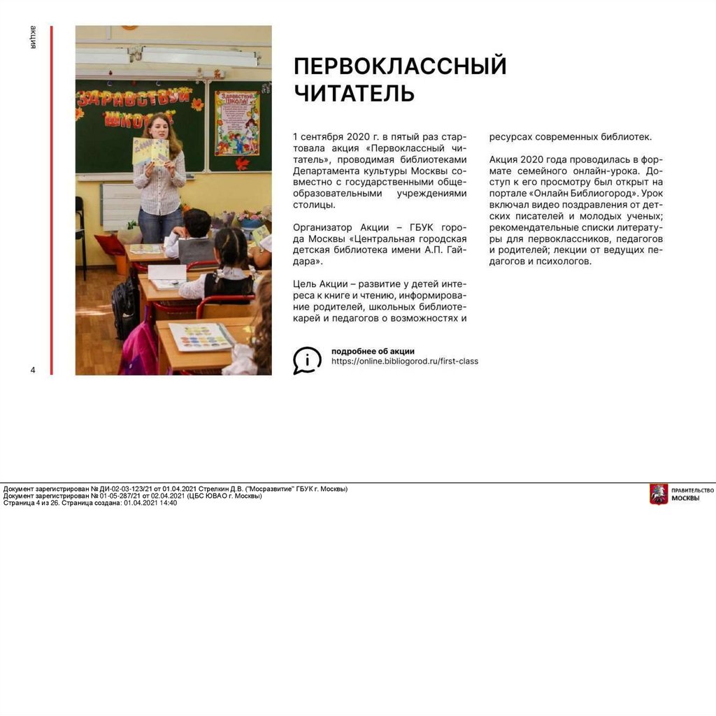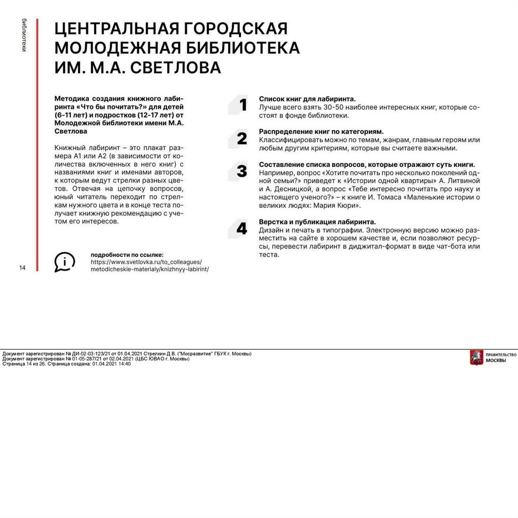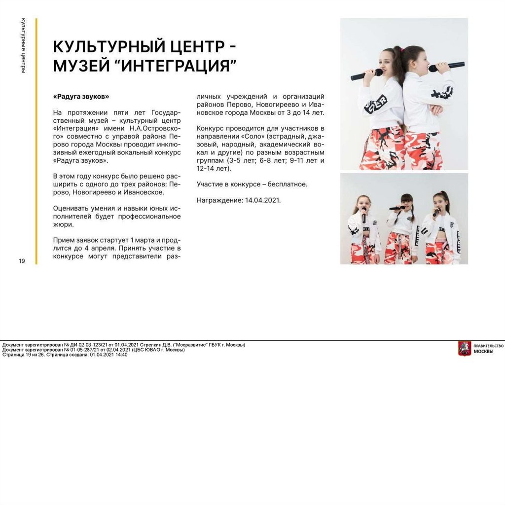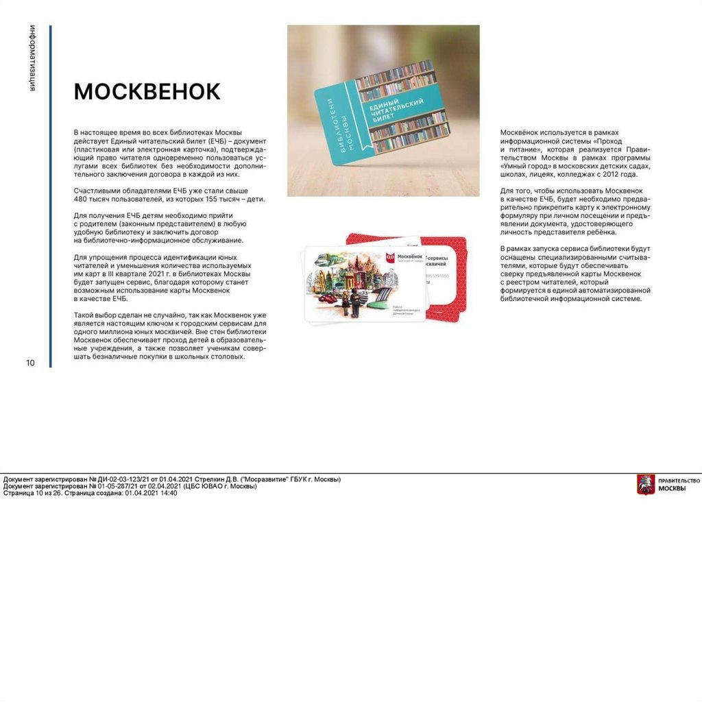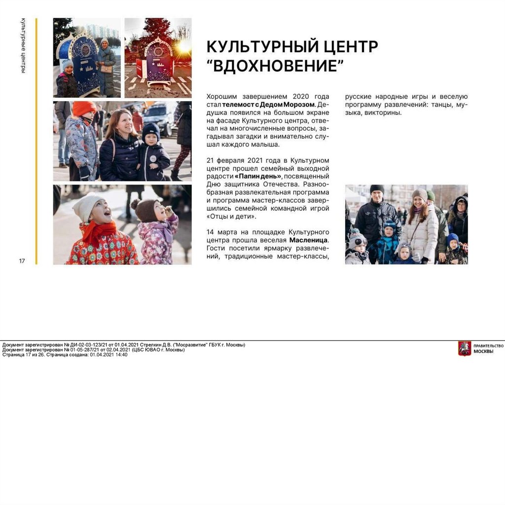 Документ зарегистрирован № ДИ-02-03-123/21 от 01.04.2021 Стрелкин Д.В. ("Мосразвитие" ГБУК г. Москвы)Документ зарегистрирован № 01-05-287/21 от 02.04.2021 (ЦБС ЮВАО г. Москвы)