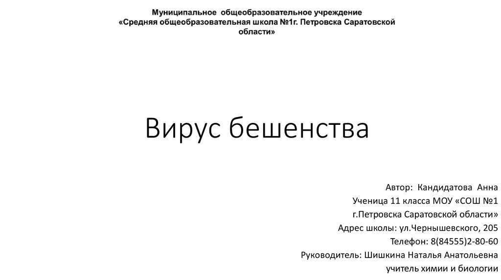 Проведение классного часа в 11 классе на тему: «Вирус бешенства». Фото было сделано