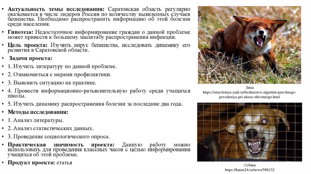 • Цель проекта: Изучить вирус бешенства, исследовать динамику его