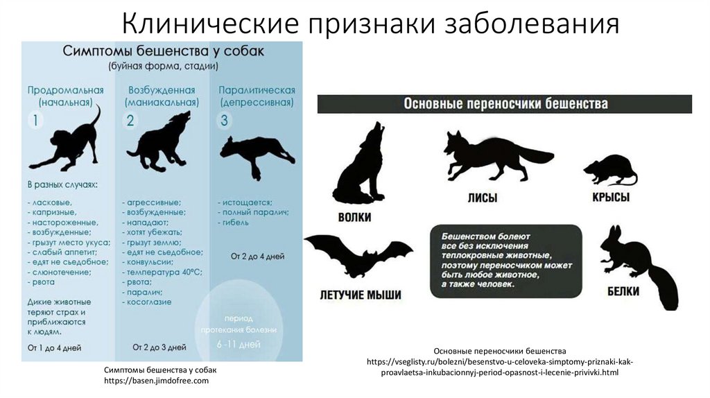 Клинические признаки заболеванияСимптомы бешенства у собак