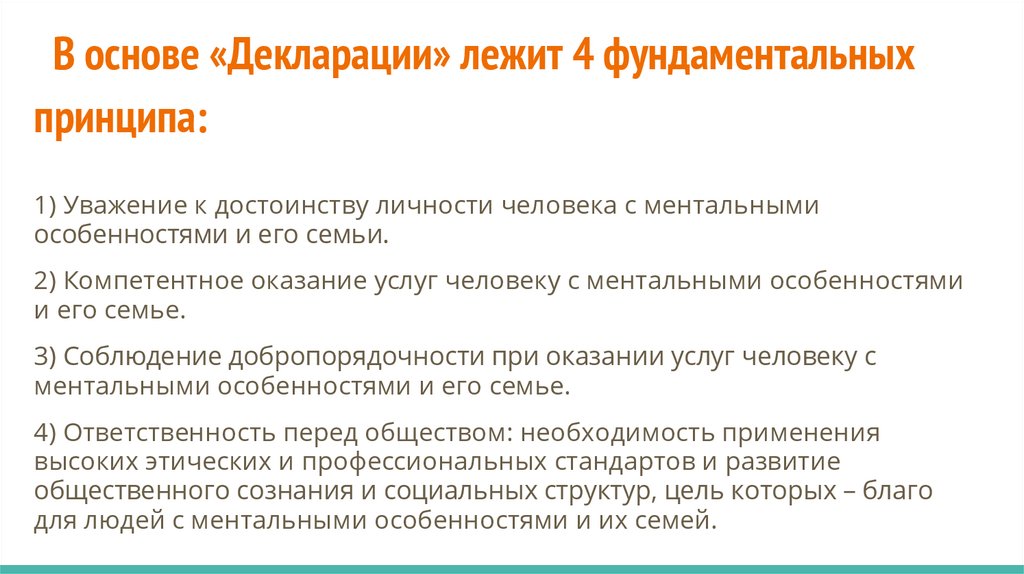 В основе «Декларации» лежит 4 фундаментальныхпринципа: