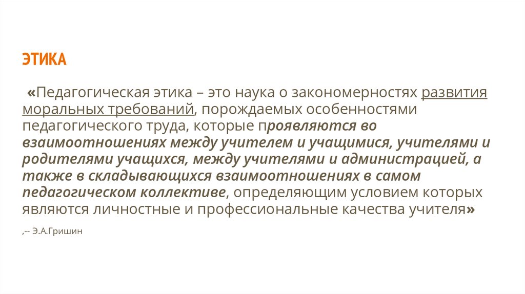ЭТИКА«Педагогическая этика – это наука о закономерностях развития