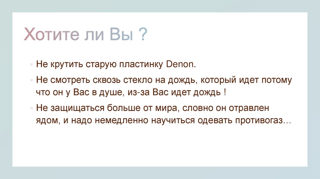 Не крутить старую пластинку Denon.Не смотреть сквозь стекло на дождь, который идет потому