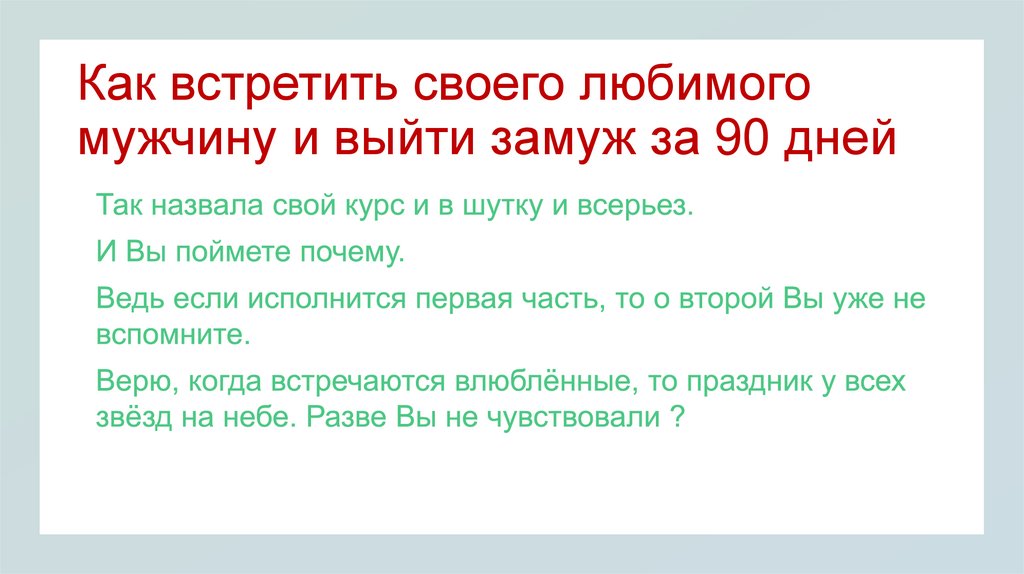 Как встретить своего любимогомужчину и выйти замуж за 90 дней