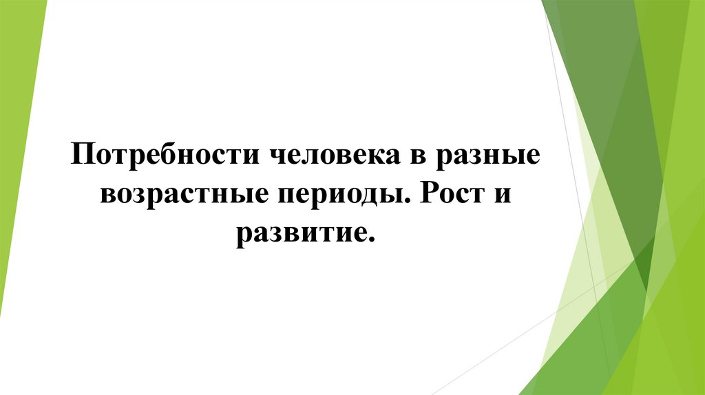 Потребности человека в разные возрастные периоды. Рост и развитие