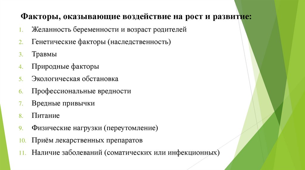 Факторы, оказывающие воздействие на рост и развитие:1.