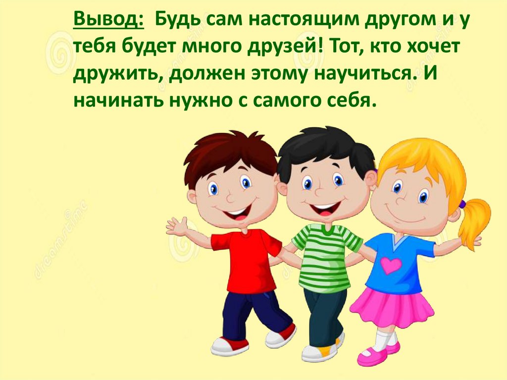 Вывод: Будь сам настоящим другом и утебя будет много друзей! Тот, кто хочет