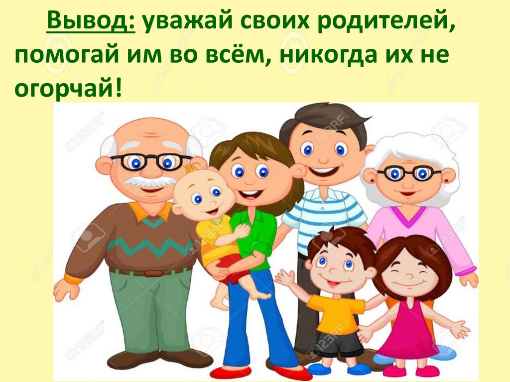 Вывод: уважай своих родителей,помогай им во всём, никогда их не