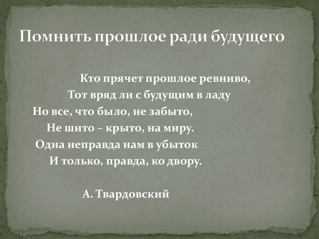 Кто прячет прошлое ревниво,Тот вряд ли с будущим в ладу