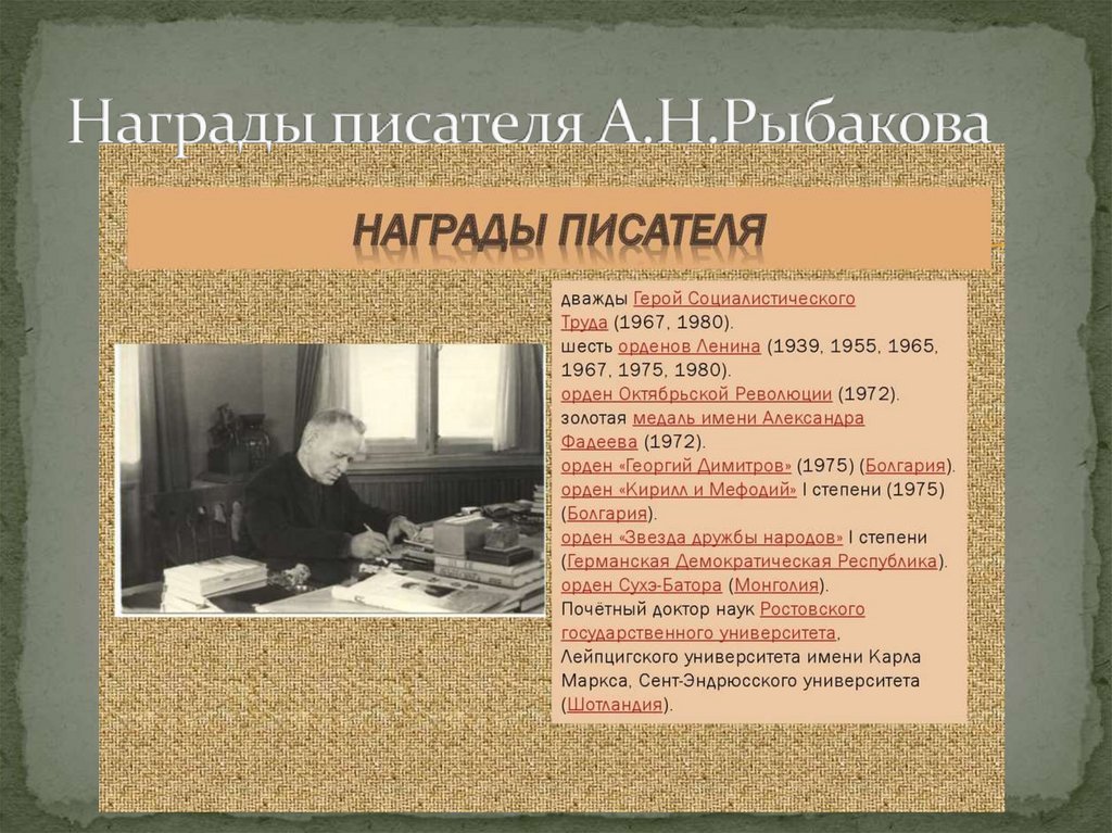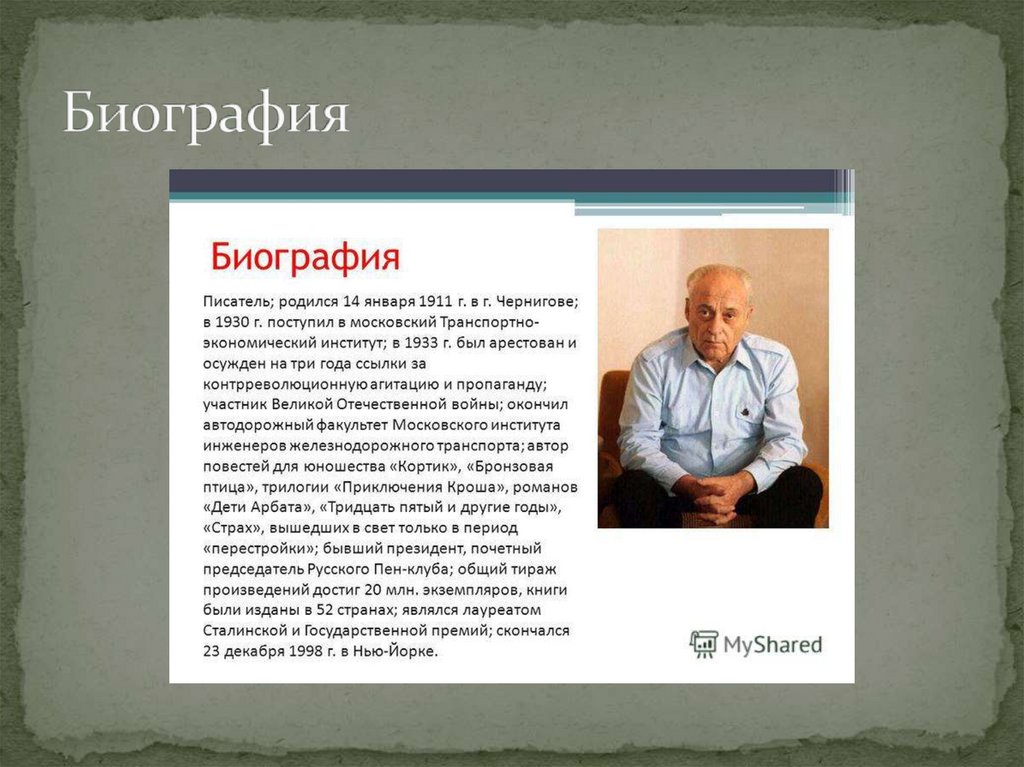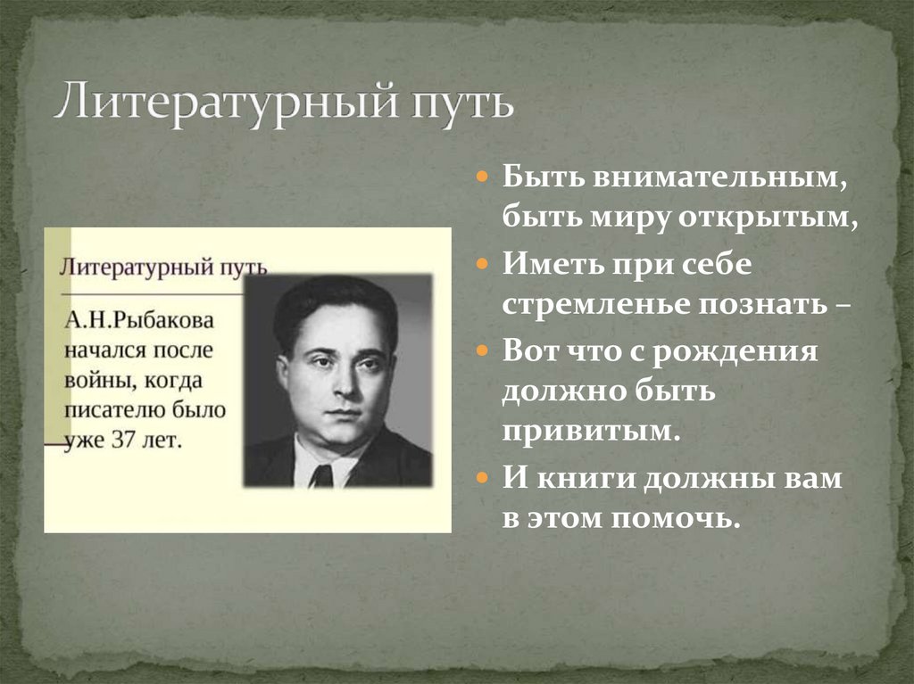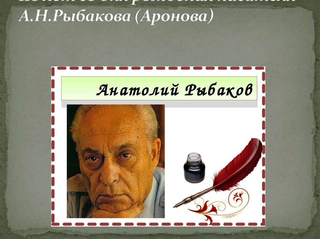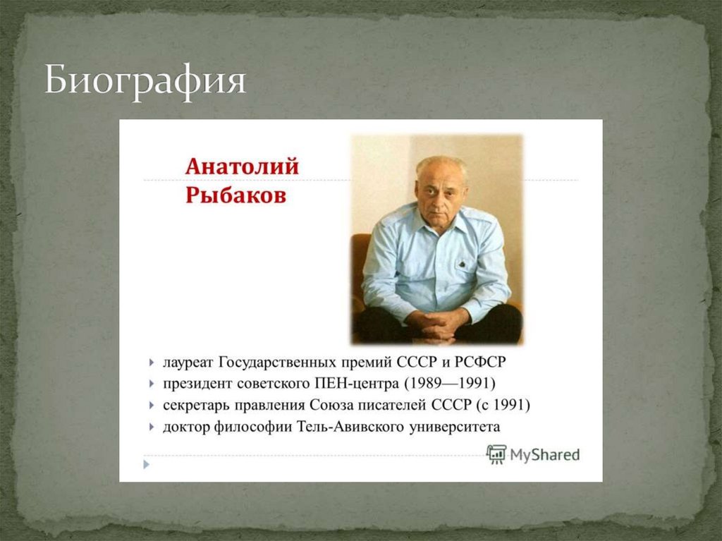 Анато́лий Нау́мович Рыбако́в. Помнить прошлое ради будущего