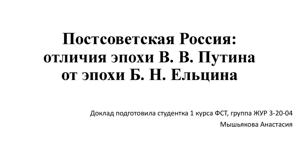 Постсоветская Россия: отличия эпохи В. В. Путина от эпохи Б. Н. Ельцина