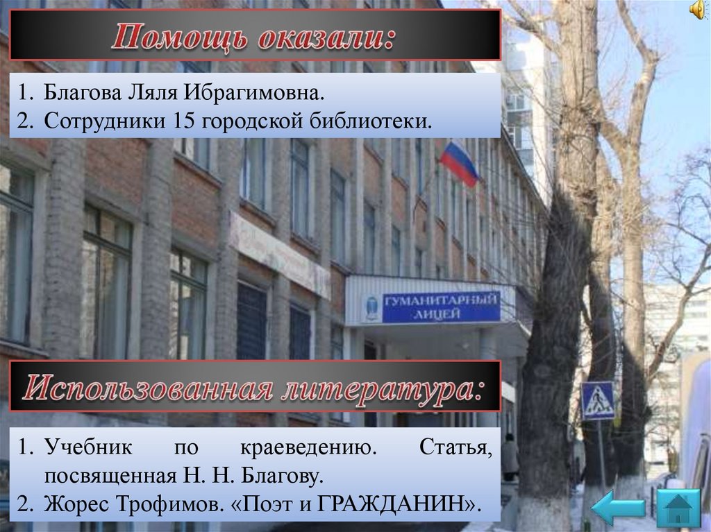 1. Благова Ляля Ибрагимовна.2. Сотрудники 15 городской библиотеки.