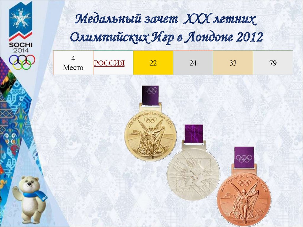 Медальный зачет XXX летнихОлимпийских Игр в Лондоне 2012