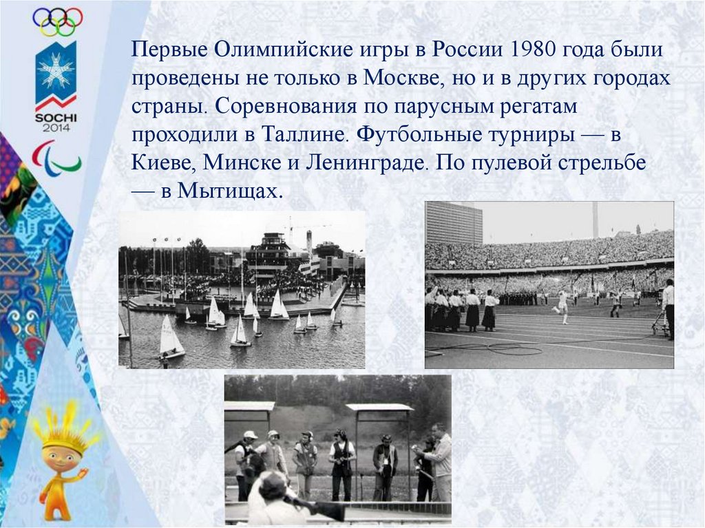 Первые Олимпийские игры в России 1980 года былипроведены не только в Москве, но и в других городах