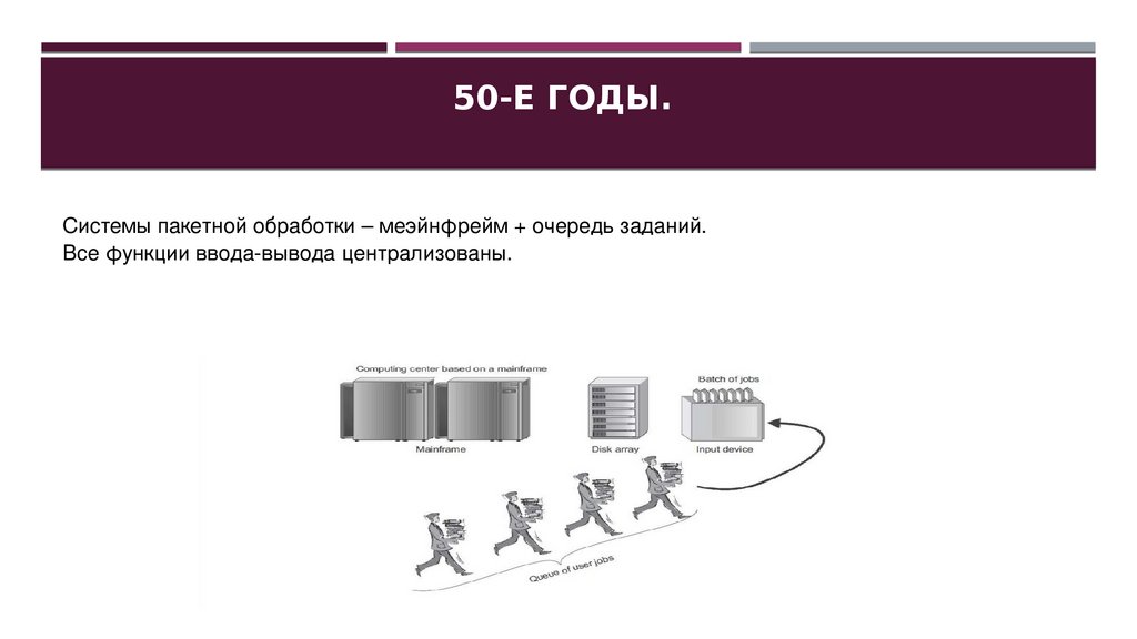50-Е ГОДЫ.Системы пакетной обработки – меэйнфрейм + очередь заданий.