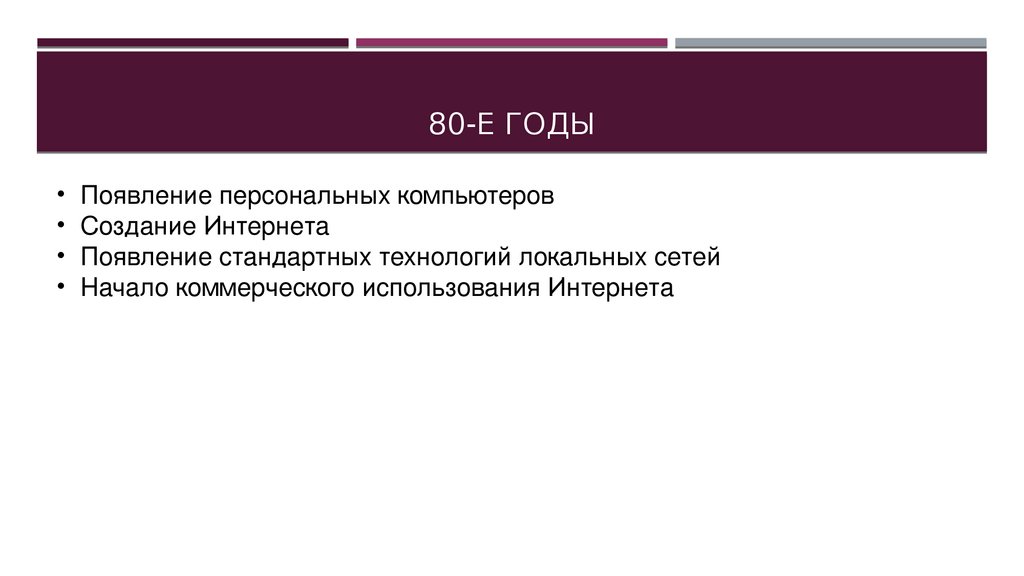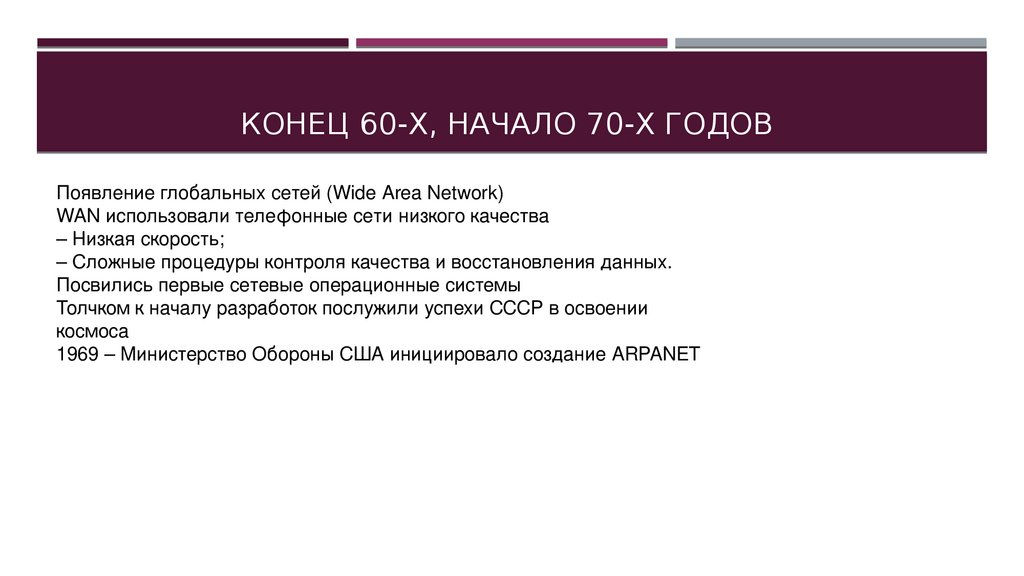 КОНЕЦ 60-Х, НАЧАЛО 70-Х ГОДОВПоявление глобальных сетей (Wide Area Network)