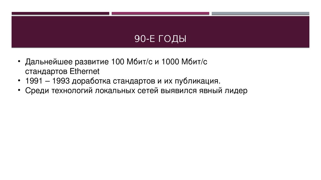 90-Е ГОДЫ• Дальнейшее развитие 100 Мбит/c и 1000 Мбит/c
